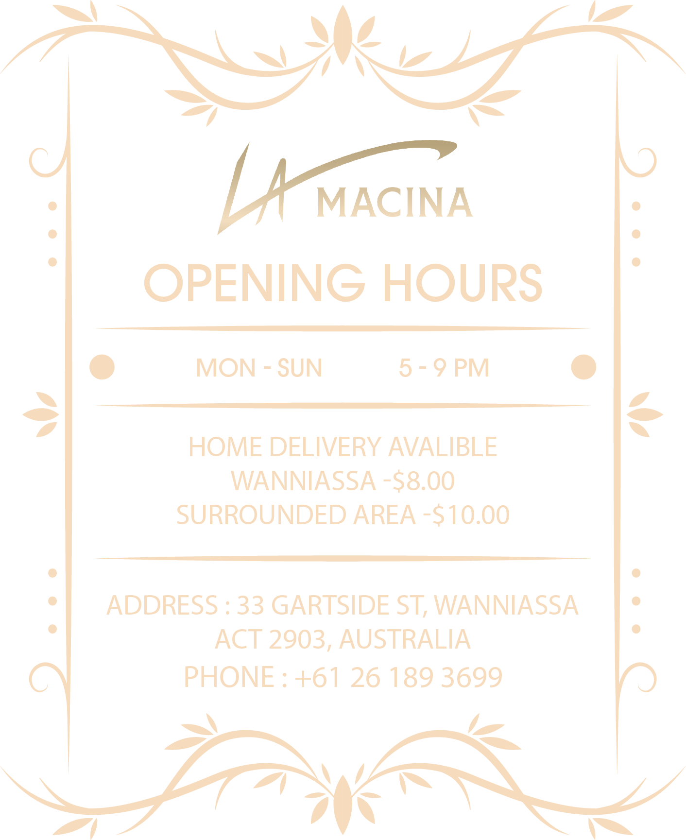 Join us at La Macina, where every meal is a celebration and every moment is infused with flavor, warmth, and hospitality. We look forward to welcoming you into our culinary haven, where unforgettable experiences await.